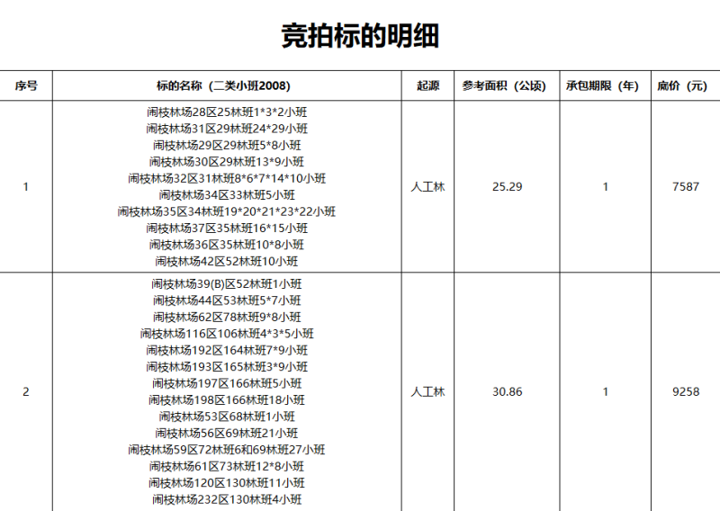 競(jìng)拍結(jié)束仍沒(méi)有成交的標(biāo)的,由吉林森工臨江林業(yè)有限公司統(tǒng)一收回另行處置。