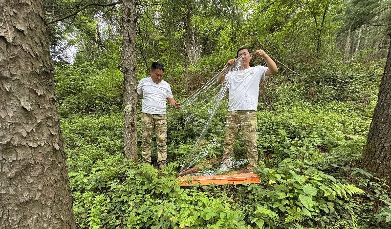 調(diào)查工作按照“分區(qū)包片、責(zé)任到人”的工作機(jī)制全面鋪開。在調(diào)查方式上,工作人員創(chuàng)新采用“無人機(jī)航拍+地面踏查+誘捕監(jiān)測”的立體化排查模式,確保階段任務(wù)高效推進(jìn)。針對(duì)高海拔陡坡、偏遠(yuǎn)山區(qū)等人工難以到達(dá)的區(qū)域,利用無人機(jī)搭載高清攝像頭進(jìn)行航拍,通過影像分析初步判斷是否存在蟲害跡象。在地面踏查過程中,調(diào)查人員攜帶蟲情調(diào)查工具包,沿著預(yù)設(shè)線路仔細(xì)查看松樹樹干、枝條,對(duì)發(fā)現(xiàn)的蛀孔、蟲糞等痕跡及時(shí)記錄,運(yùn)用剝皮法、伐木解析法深入了解害蟲危害程度,并采集不同蟲態(tài)的害蟲標(biāo)本。同時(shí),在林區(qū)健康小班內(nèi)通過布設(shè)誘捕器、飛行阻隔器及餌木誘集等方式進(jìn)行廣譜監(jiān)測,掌握松林內(nèi)鉆蛀類害蟲的分布情況。